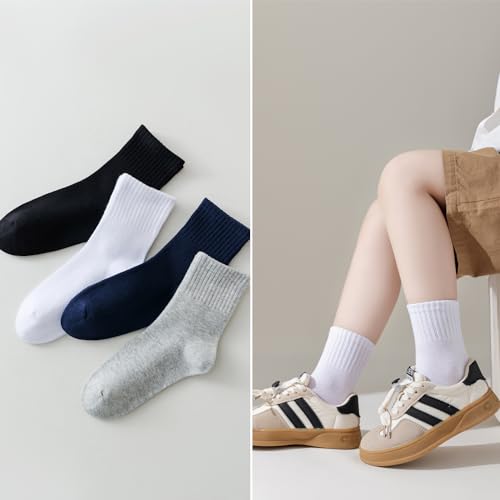 EPEIUS Unisex Kids Crew Socks Soft Cotton Seamless School Socks for Girls Boys Dress Sox White Black Navy 4/6/8 Pairs 4