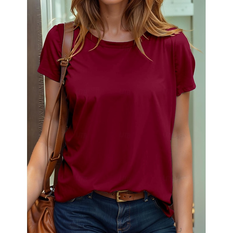 More information about Women's T Shirt Solid Color Plain Stylish Casual Short Sleeve Round Neck Regular Tops Daily Weekend Print Black White Wine Sky Blue Dusty Blue Summer Spring