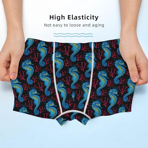 HOT ! Boys' Cotton Boxer Brief Soft Underwear-Blue Seahorse