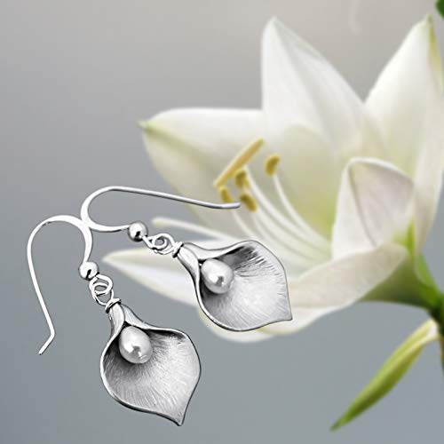 • 🌷Size: 4cm (1.57 inch) * 1.5cm (0.59 inch).This silver plated earring features a calla lily as the main element, and the imitation pearl makes it more elegant and stylish.