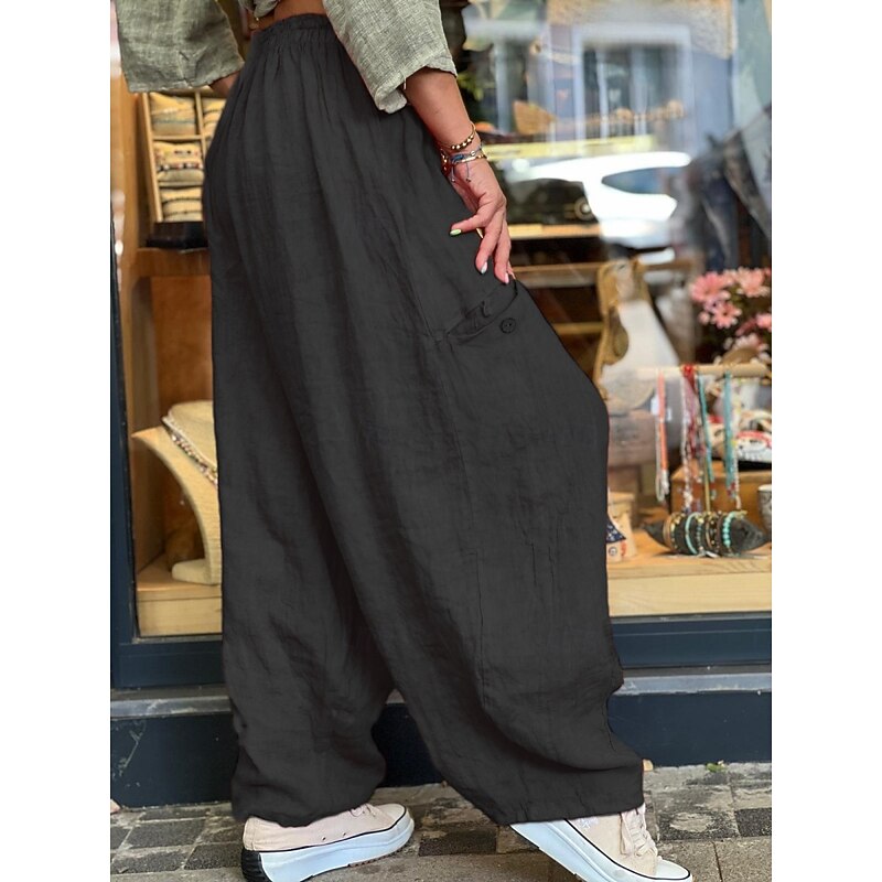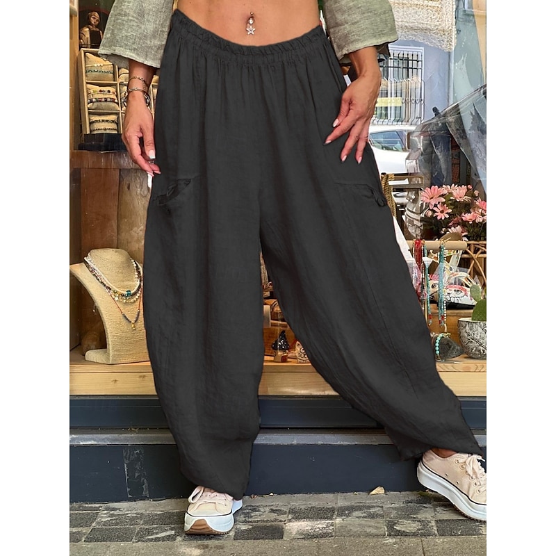 HOT ! Women's Cotton Linen Pants Chinos Fashion Basic Full Length Medium Waist Plain Pocket Drawstring Comfort Outdoor Micro-elastic Vacation Street Daily Black Orange Khaki Summer Spring Regular Fit