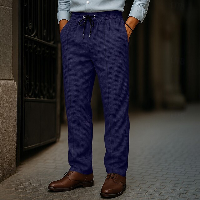 More information about Men's Waffle Trousers Baggy Pants Buttons Plain Wearable Full Length Outdoor Daily Camping & Hiking Vacation Fashion Black White