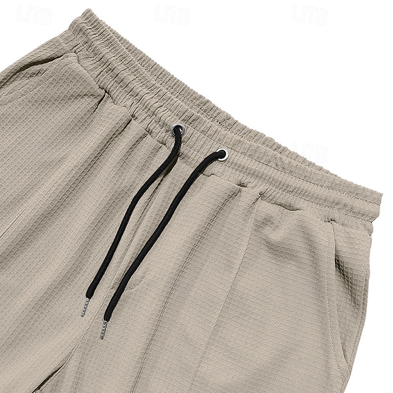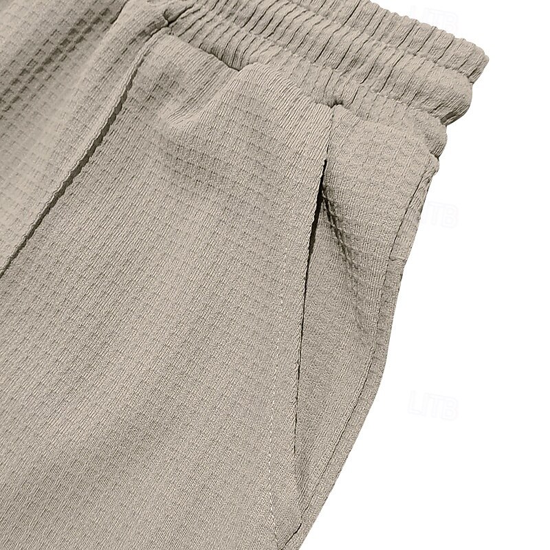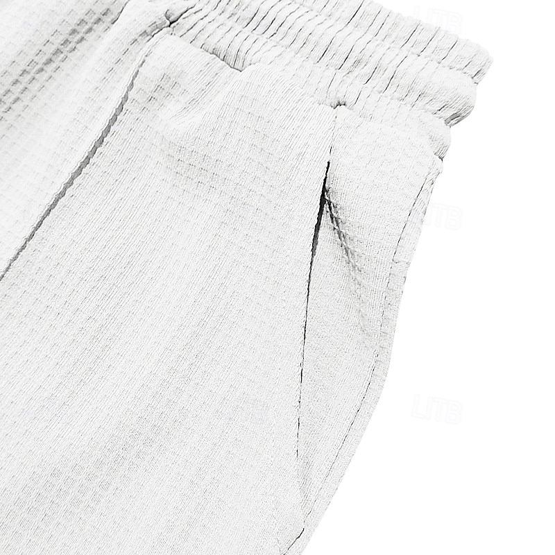 Men's Waffle Trousers Baggy Pants Buttons Plain Wearable Full Length Outdoor Daily Camping & Hiking Vacation Fashion Black White 17