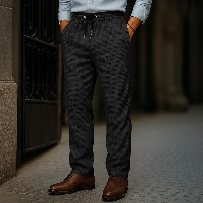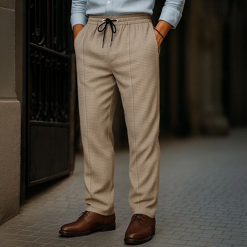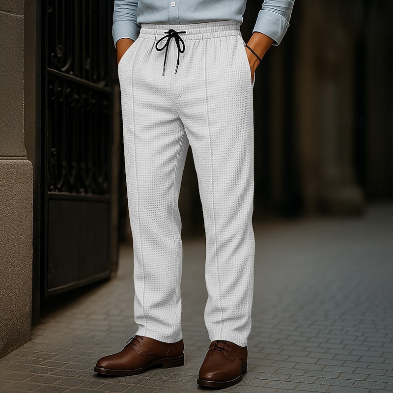 HOT ! Men's Waffle Trousers Baggy Pants Buttons Plain Wearable Full Length Outdoor Daily Camping & Hiking Vacation Fashion Black White