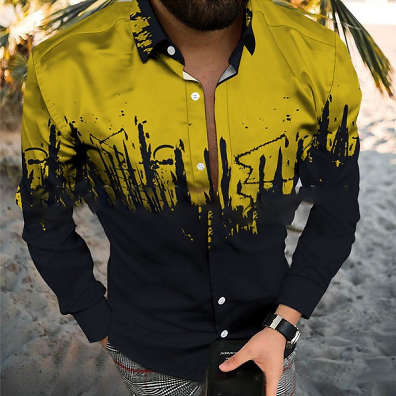 More information about Men's Geometric Pattern Rendering Shirt Button Up Shirt Short Sleeve Fashion Designer Casual Casual Daily Beach Spring & Summer Turndown Button-Down Black-White Yellow Light Green Army Green Red