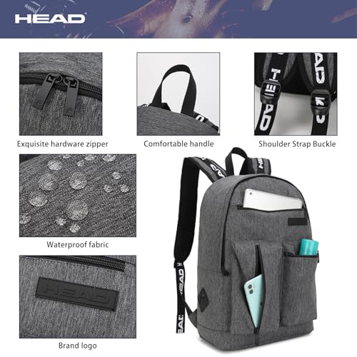 HEAD 30L Laptop Backpack for Men, Lightweight Work Backpacks Fits 15.6 inch Notebook, Waterproof Casual Daypack for Business/College/Travel/Daily, Gray 4