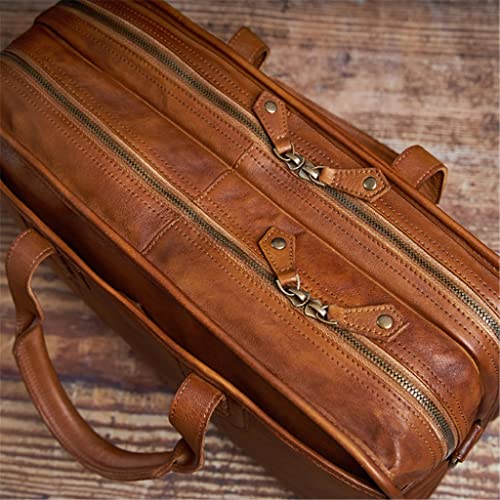 Briefcase Men Vintage Man Handbag Travel Bag Shoulder Handmade Genuine Leather Brown Laptop Businessv 6