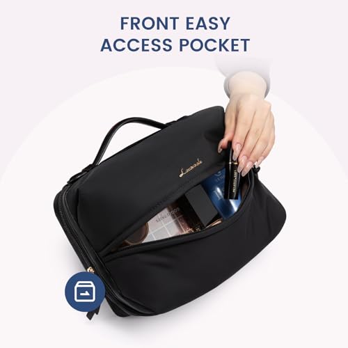 HOT ! LOVEVOOK Travel Toiletry Bag With Hanging Hook for Women, Puffy Cosmetic Makeup Bag Organizer with Vegan Leather Handle for Accessories, Essentials, Toiletries,Black
