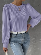 More information about Women's Tunic Elegant Casual Solid Color Lantern Sleeve Long Sleeve Regular Tops Crew Neck Daily White Wine Blue Purple Spring Fall