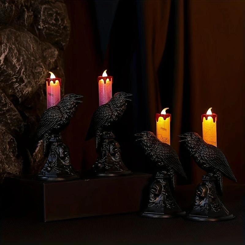 Halloween Candlestick Light Crow Light Ghost Festival Decoration Props Candlestick Ornament Led Electronic Candle Light Ornament 4