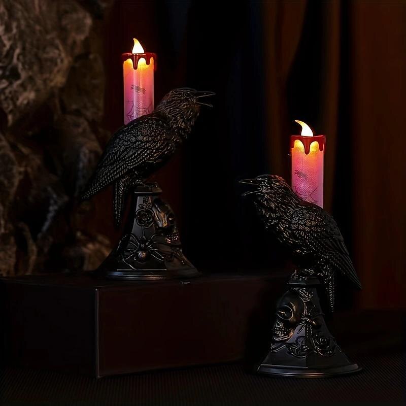 Halloween Candlestick Light Crow Light Ghost Festival Decoration Props Candlestick Ornament Led Electronic Candle Light Ornament 1