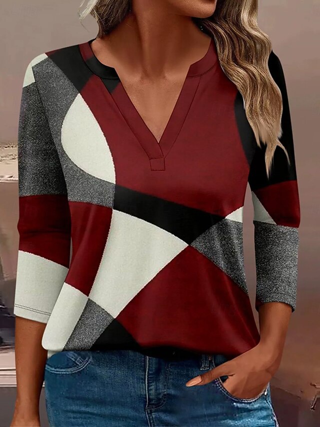 More information about Women's T Shirt Graphic Geometric Vintage Stylish Classic Long Sleeve V Neck Notched Neck Regular Tops Daily Print Red Blue Purple Green Spring Fall Winter