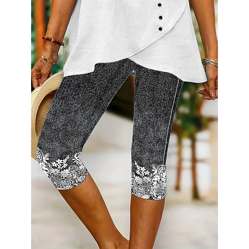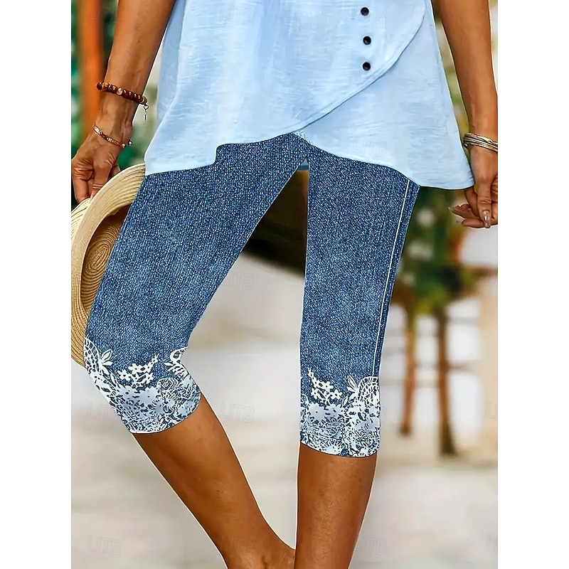 HOT ! Women's Leggings Capri Pants High Elasticity Vacation Fashion Hawaiian Calf-Length Mid Waist Floral Graphic Printing Breathable Soft Vacation Casual Daily Light Blue Summer Spring Regular Fit