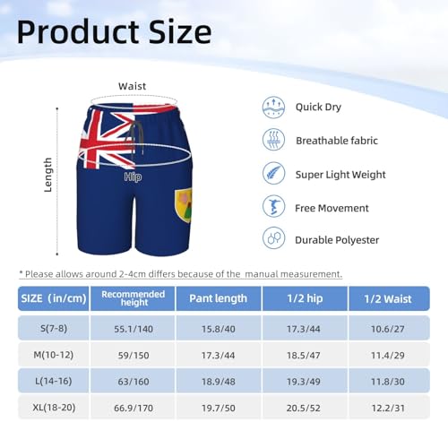 HOT ! Flag of The Turks and Caicos Islands Small Youth Beach Pants, Soft and Breathable, with Drawstring Waist, Suitable for Sports and Leisure. Black
