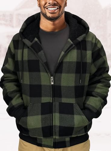 Plaid Flannel Hoodie for Men Sherpa Lined Jacket Fleece Full Zip Up Coat Winter Warm Thermal Sweatshirts Long Sleeve 1