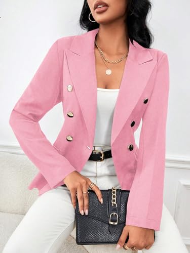 Casual Blazer for Women Solid Color Double-Breasted Suit Jacket with Lapel Collar for Business Office Pink 6