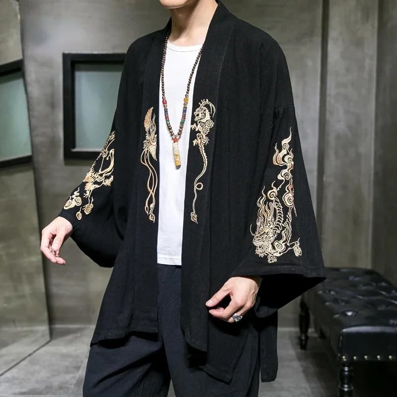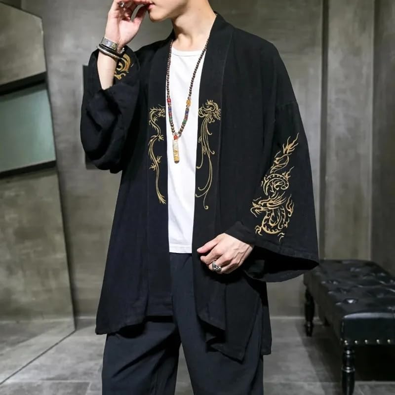 More information about Chinese Style Hanfu Men's Embroidered Cardigan Japanese Kimono Mens Shirt Vintage Tang Suit Jacket Male
