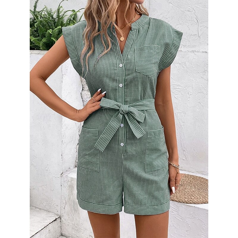 HOT ! Women's Normal Romper Active Striped Sleeveless V Neck Lace up Pocket Vacation Daily Regular Fit Red Blue Green Summer