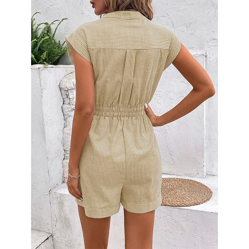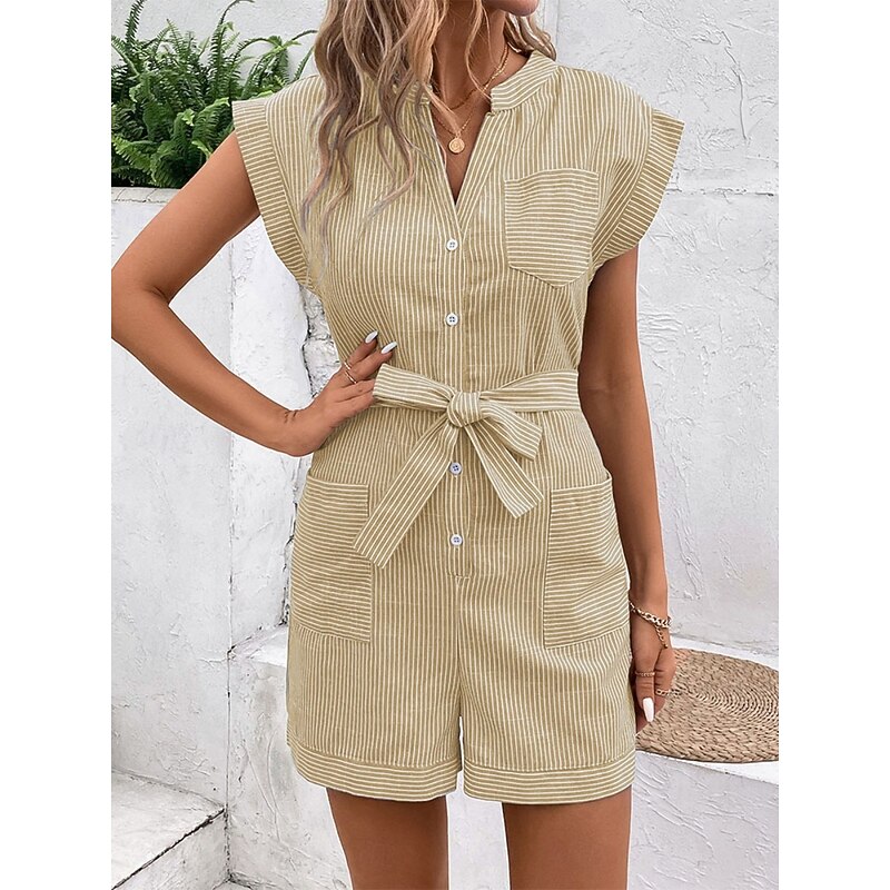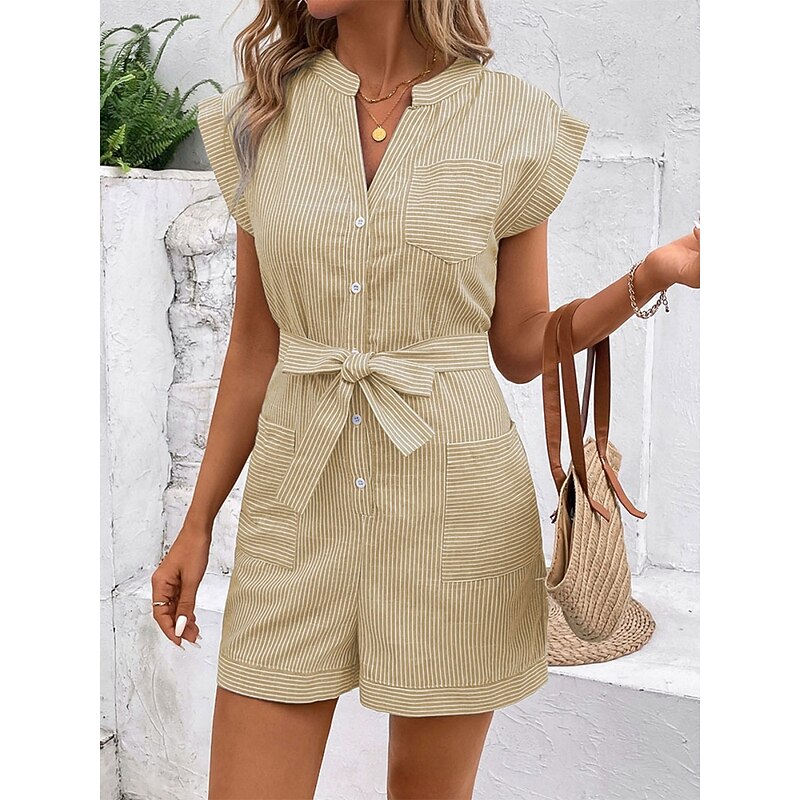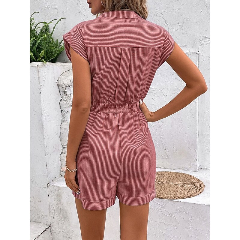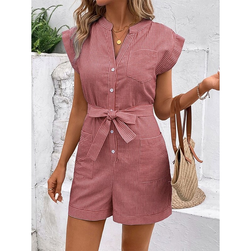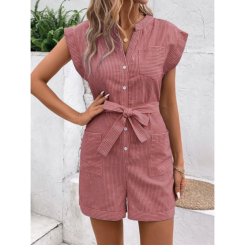 Women's Normal Romper Active Striped Sleeveless V Neck Lace up Pocket Vacation Daily Regular Fit Red Blue Green Summer 13