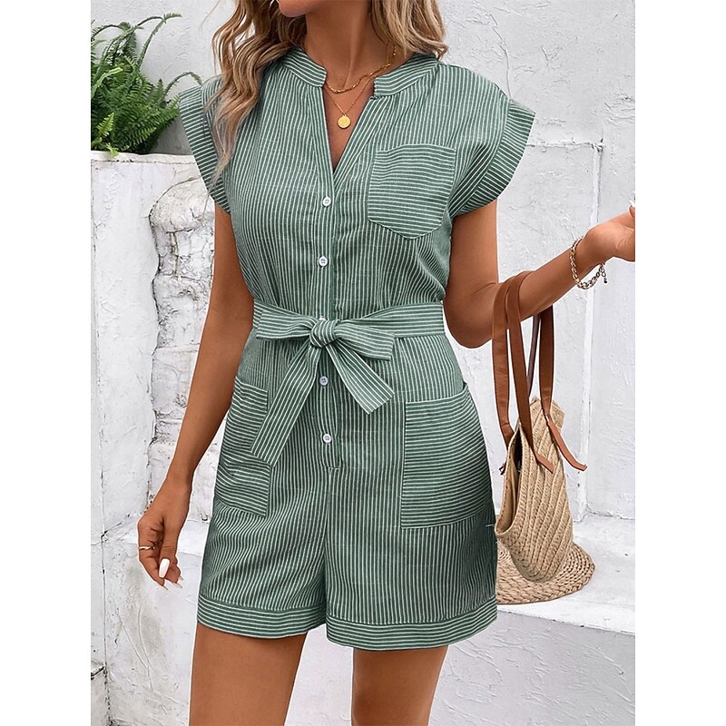 More information about Women's Normal Romper Active Striped Sleeveless V Neck Lace up Pocket Vacation Daily Regular Fit Red Blue Green Summer