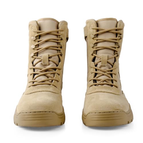 QUNLON Men's Military Side Zipper Tactical Boots Lightweight Breathable 8 inch Combat Outdoors Boots 1