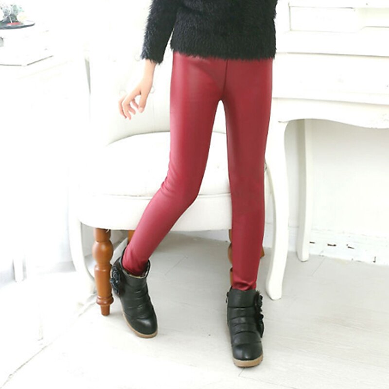 Kids Girls' Leggings Solid Color Active Outdoor 7-13 Years Fall Black Red Navy Blue 6
