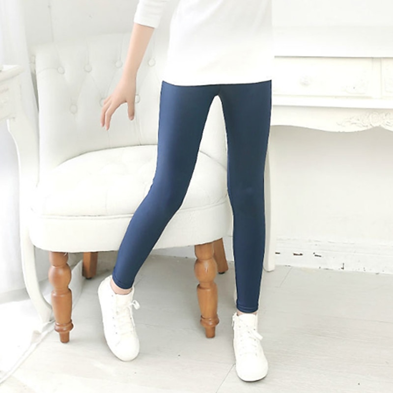 HOT ! Kids Girls' Leggings Solid Color Active Outdoor 7-13 Years Fall Black Red Navy Blue