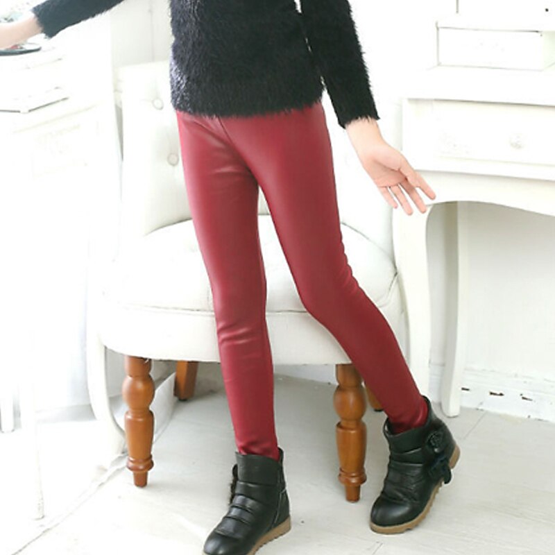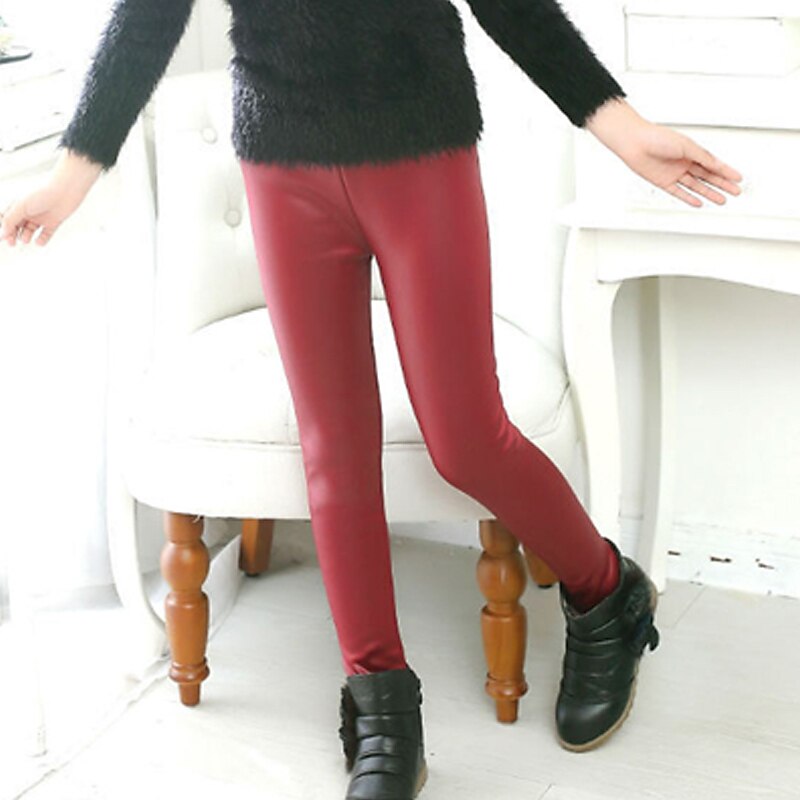 Kids Girls' Leggings Solid Color Active Outdoor 7-13 Years Fall Black Red Navy Blue 12