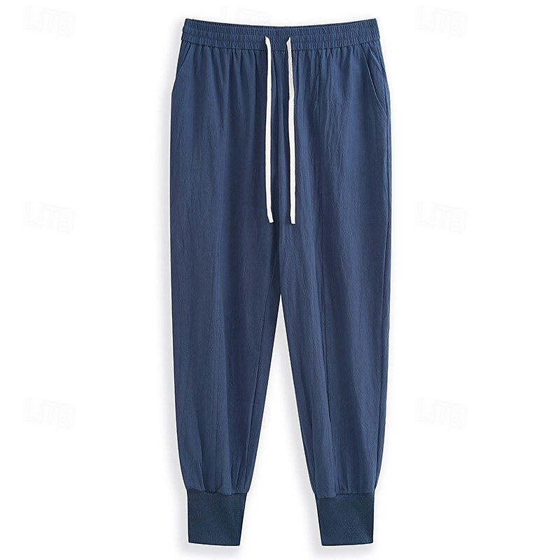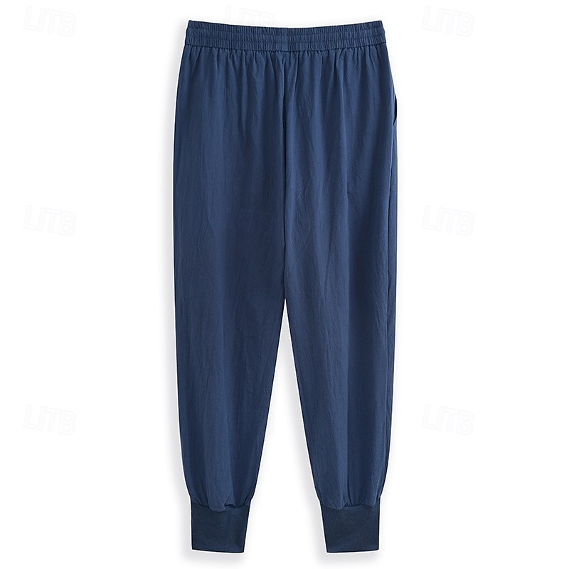 More information about Men's Linen Pants Trousers Patchwork Drawstring Harem Solid Color Breathable Quick Dry Street Casual Athleisure Loose Fit Black Gray Micro-elastic / Winter / Cropped Pants / Moisture Wicking