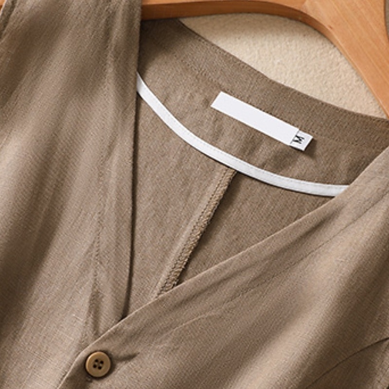 Highlights - Stay cool and stylish this summer with this sleeveless Linen Shirt for women - Perfect for casual outings, this V Neck shirt features a buttoned front and pocket detailing - Lightweight and comfortable, this shirt is a must-have for any summer wardrobe
