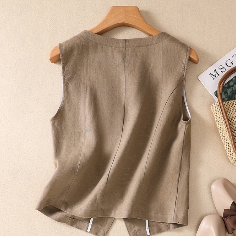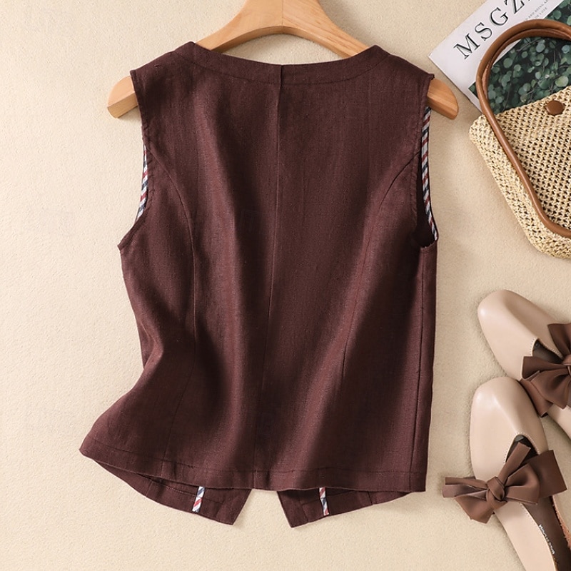 More information about Women's Cotton Linen Vest Plain Modern Casual Sleeveless V Neck Regular Tops Holiday Going out Buttons Pocket White Brown Khaki Apricot Summer