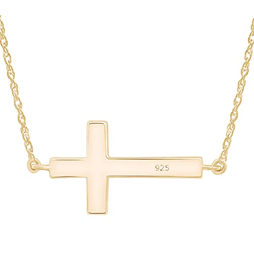 HOT ! THE JEWEL ZONE Sideways Cross Necklace Pendant in 10k Solid Gold or 14K Gold Plated Sterling Silver, Off Centered Christian Religious Jewelry Gift for Women with 18" Chain