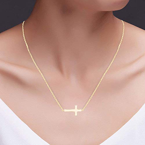 More information about THE JEWEL ZONE Sideways Cross Necklace Pendant in 10k Solid Gold or 14K Gold Plated Sterling Silver, Off Centered Christian Religious Jewelry Gift for Women with 18" Chain