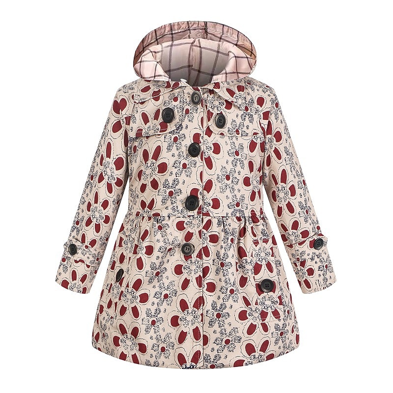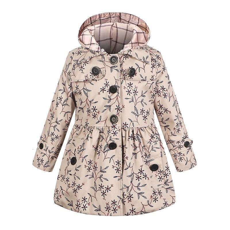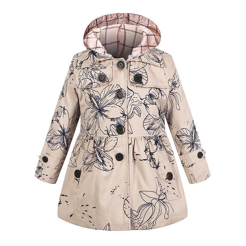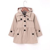 More information about Kids Girls' Trench Coat Long Sleeve Thickened windbreaker - rose red polka dots Thickened windbreaker - thickened khaki Thickened windbreaker-patterned khaki Solid Color Graphic Pocket Spring Fall