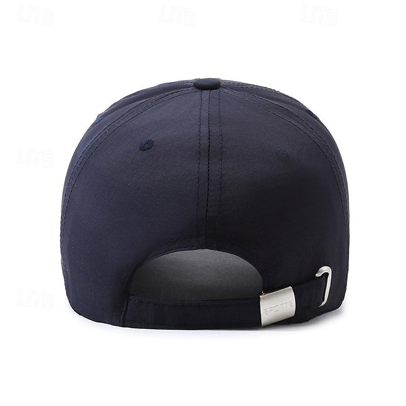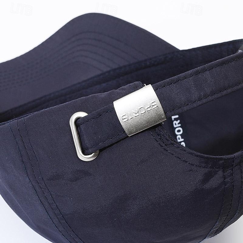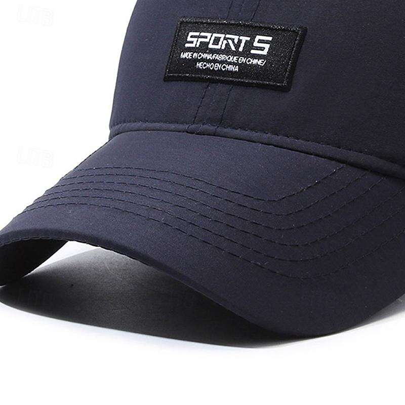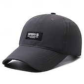 Highlights [Fabric] : Crafted from high-quality polyester, this men's baseball cap is designed for maximum comfort and breathability. Its quick-dry and sunscreen properties make it ideal for warm weather wear, ensuring you stay cool and protected under the sun. [Fit] : The cap features an adjustable strap at the back, allowing for a customizable fit that suits various head sizes. The structured crown helps maintain its shape while ensuring a snug and secure fit for everyday wear. [Design Highlights] : With its minimalist aesthetic, this versatile cap boasts a sleek black design accompanied by a stylish "SPORTS" letter pattern on the front, adding a modern touch. The curved visor effectively shields your eyes from the sun, making it both functional and fashionable. [Occasions] : Perfect for street style or daily wear, this baseball cap is well-suited for casual outings, sporty activities, or as a trendy accessory to complement any laid-back attire. Whether you're running errands or heading for a weekend adventure, this cap completes your look effortlessly. [Size] : Available in one size, this cap features an adjustable strap that caters to a range of head sizes, providing a comfortable and secure fit for most individuals.