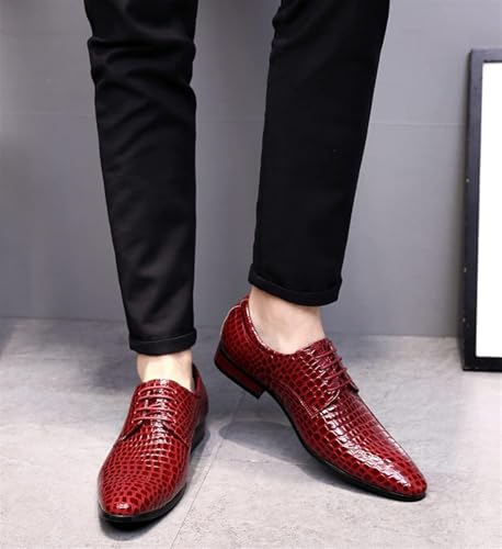 Men's Oxfords Crocodile Pattern Patent Leather Wedding Prom Formal Dress Casual Shoes for Men 6