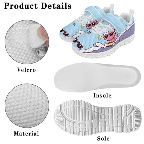 Girls Shoes Non Slip Lightweight Breathable Comfortable Sport Walking Athletic Running Tennis Sneakers (Little Kid) Surfing Axolot Pattern White Sole 4