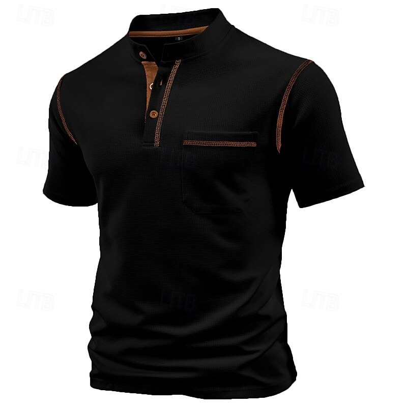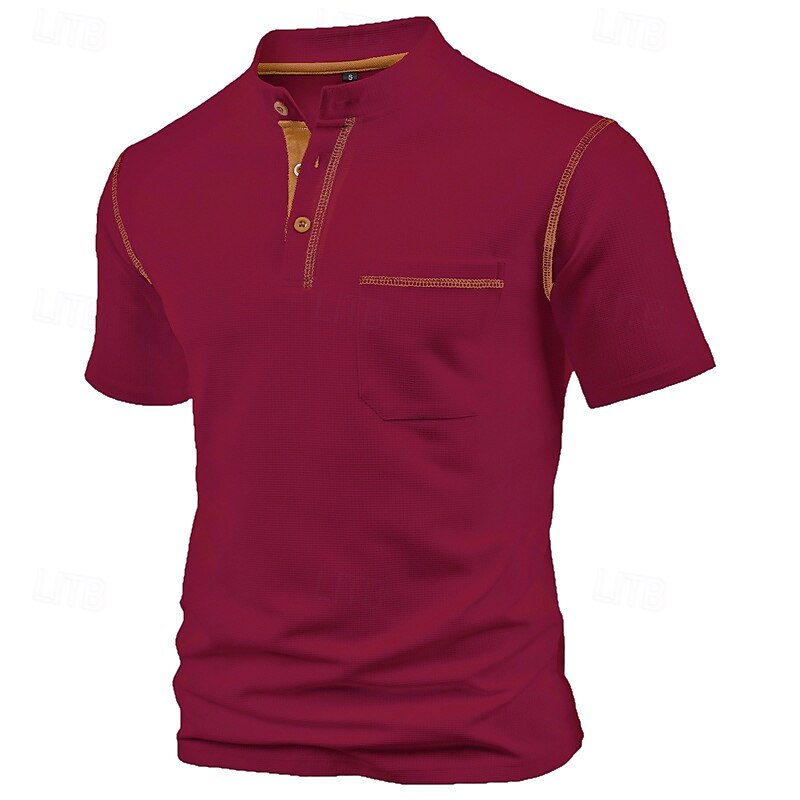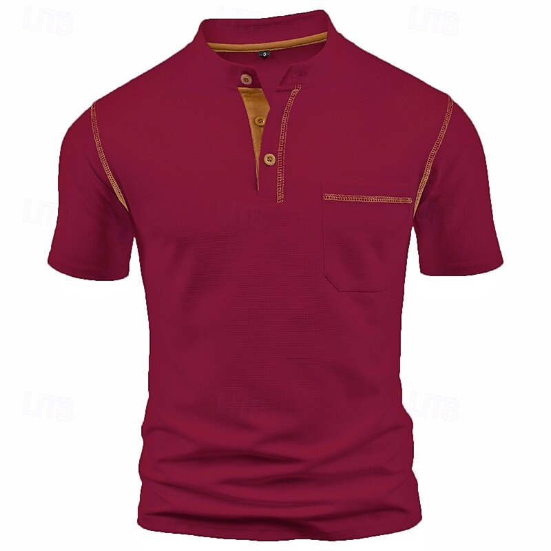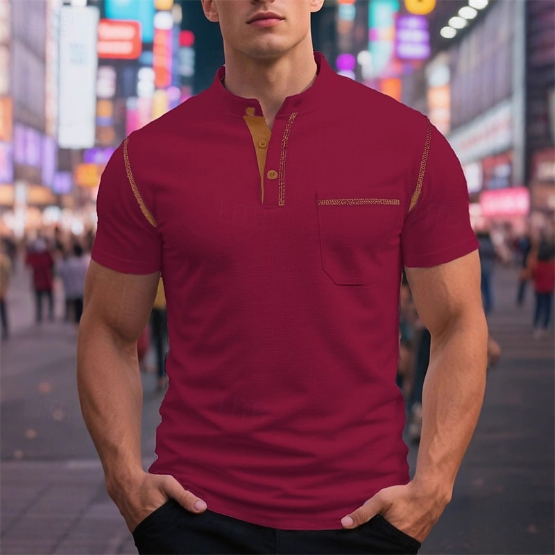 More information about Men's T Shirt Henley Shirt Tee Short Sleeve Shirt Short Sleeve Henley Summer Color Block Fashion Designer Basic Patchwork Pocket Vacation Street Going out Wine Black White Top Tee for Men
