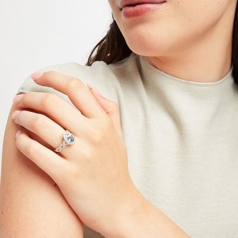 1CT/2CT Aquamarine Ring 925 Sterling Silver Pear Cut Sterling Silver Sky Blue Aquamarine and White Moissanite Aquamarine Engagement Rings Aquamarine Gifts for Women 5
