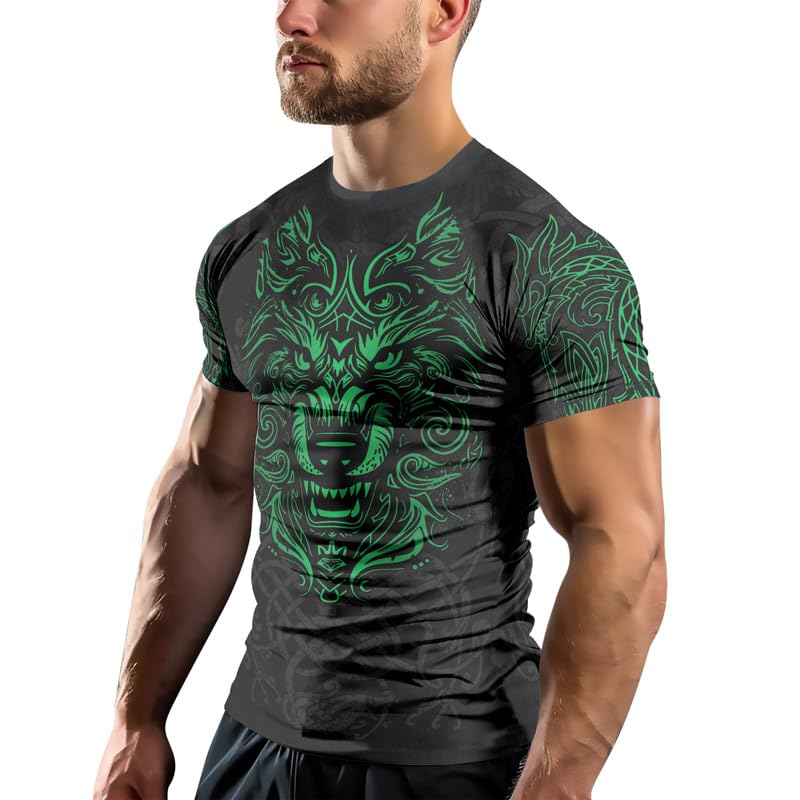 HOT ! Viking Men’s Short Sleeve BJJ Rash Guard – Compression Shirt for Jiu Jitsu, MMA, No-Gi, and Grappling Training