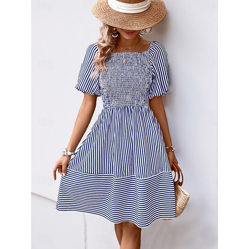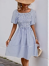 More information about Women's Mini Dress Casual Dress A Line Dress Stylish Casual Vacation Daily Regular Fit Stripe Short Sleeve Square Neck Blue Summer