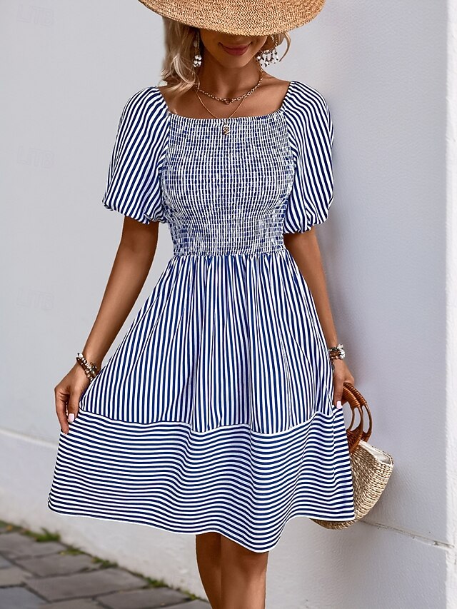 Women's Mini Dress Casual Dress A Line Dress Stylish Casual Vacation Daily Regular Fit Stripe Short Sleeve Square Neck Blue Summer 2