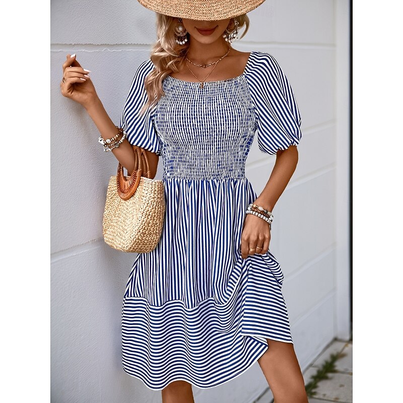 Women's Mini Dress Casual Dress A Line Dress Stylish Casual Vacation Daily Regular Fit Stripe Short Sleeve Square Neck Blue Summer 1