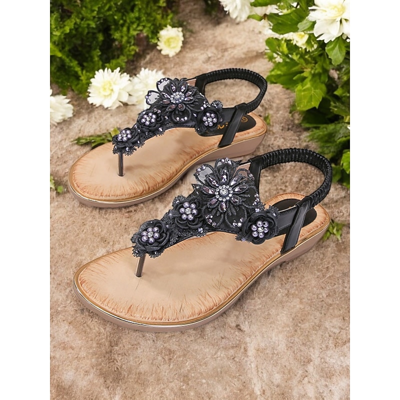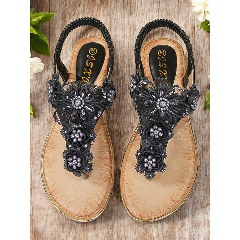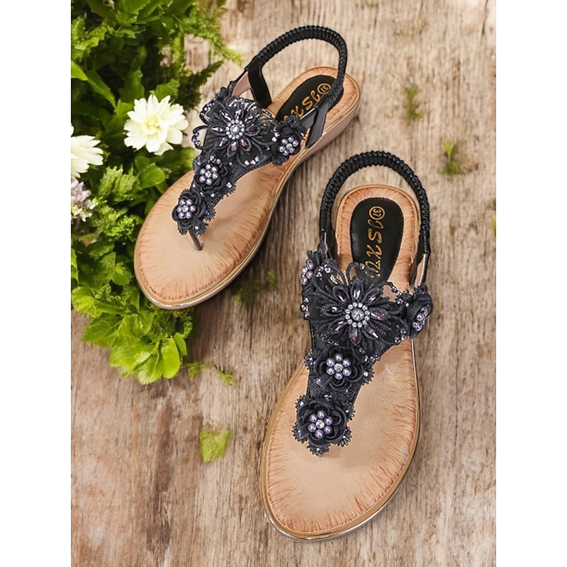 HOT ! Women's Pink Floral Lace Embellished T-Strap Sandals – Comfortable Chic Summer Slip-On Footwear
