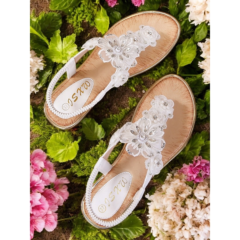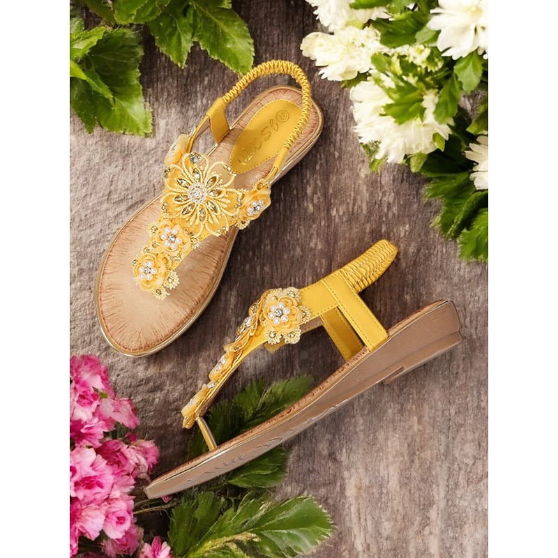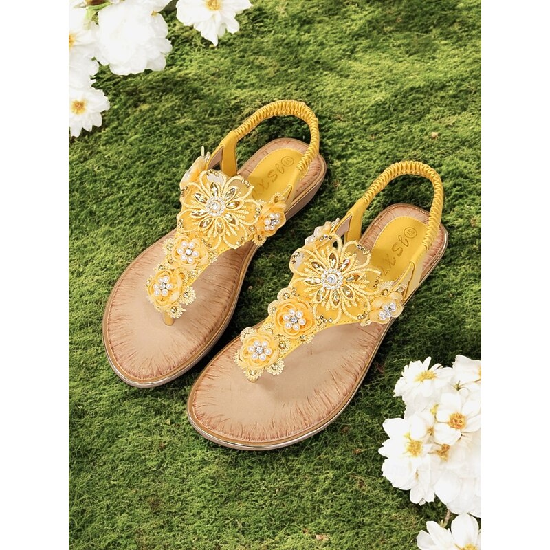 Women's Pink Floral Lace Embellished T-Strap Sandals – Comfortable Chic Summer Slip-On Footwear 14