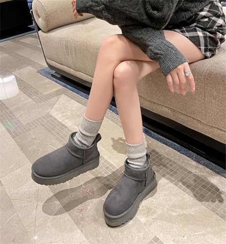 Fashion Platform Boots for Women's Fur Fleece Lined Suede Mini Boots for Men Comfortable Warm Outdoor Indoor House Non-Slip Short Ankle Boots Winter 7