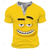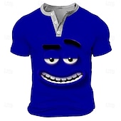 More information about Men's Cartoon Human face T Shirt Henley Shirt Short Sleeve Designer Retro Vintage Casual Street Casual Daily Summer Spring Lake blue Yellow Green Navy Blue Purple Henley Henley T-Shirt