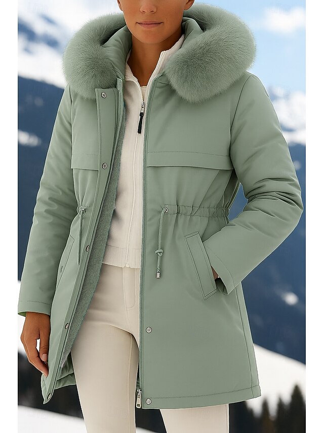 More information about Women's Winter Coat Sherpa Jacket Comfortable Breathable Pocket Fashion Casual Plain Vacation Street Casual Daily Wear Zipper Long Hooded Regular Fit Long Sleeve Outerwear Black Red Blue Spring Fall