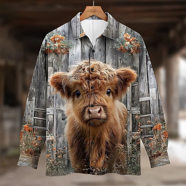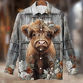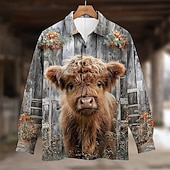 HOT ! Men's Animal Cow Highland Cattle Shirt Button Up Shirt Long Sleeve Vintage Retro Outdoor Casual Spring Fall Turndown 3D Print Collared Shirts Gray 1# Gray