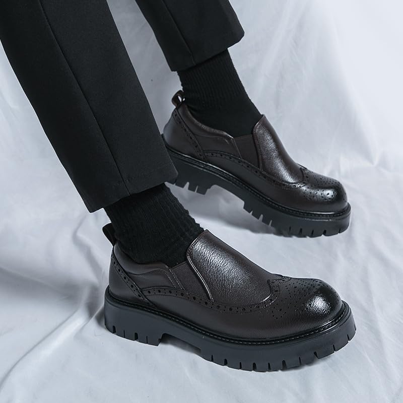 • Versatile Style: These wingtip brogue loafers feature a classic chunky platform silhouette with perforated detailing for a timeless yet trendy look.